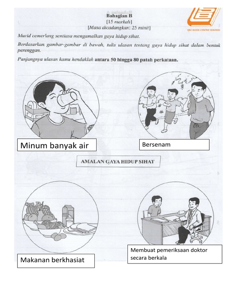 Berdasarkan bahan rangsangan dan soalan yang dikemukakan. Tulis ulasan kamu tentang cara-cara menjaga kesihatan diri. Patriotisme Jati Diri dan Kewarganegaraan.
